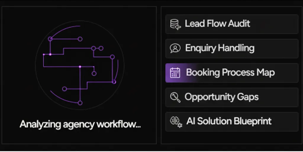 We audit your lead flow, enquiry handling, and booking process to uncover where your agency is losing opportunities — then map how AI can fix it fast