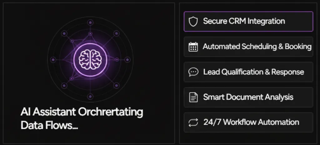 We configure and connect your 24/7 AI assistant to your CRM, calendars, and listings — so every lead gets answered, qualified, and booked automatically.